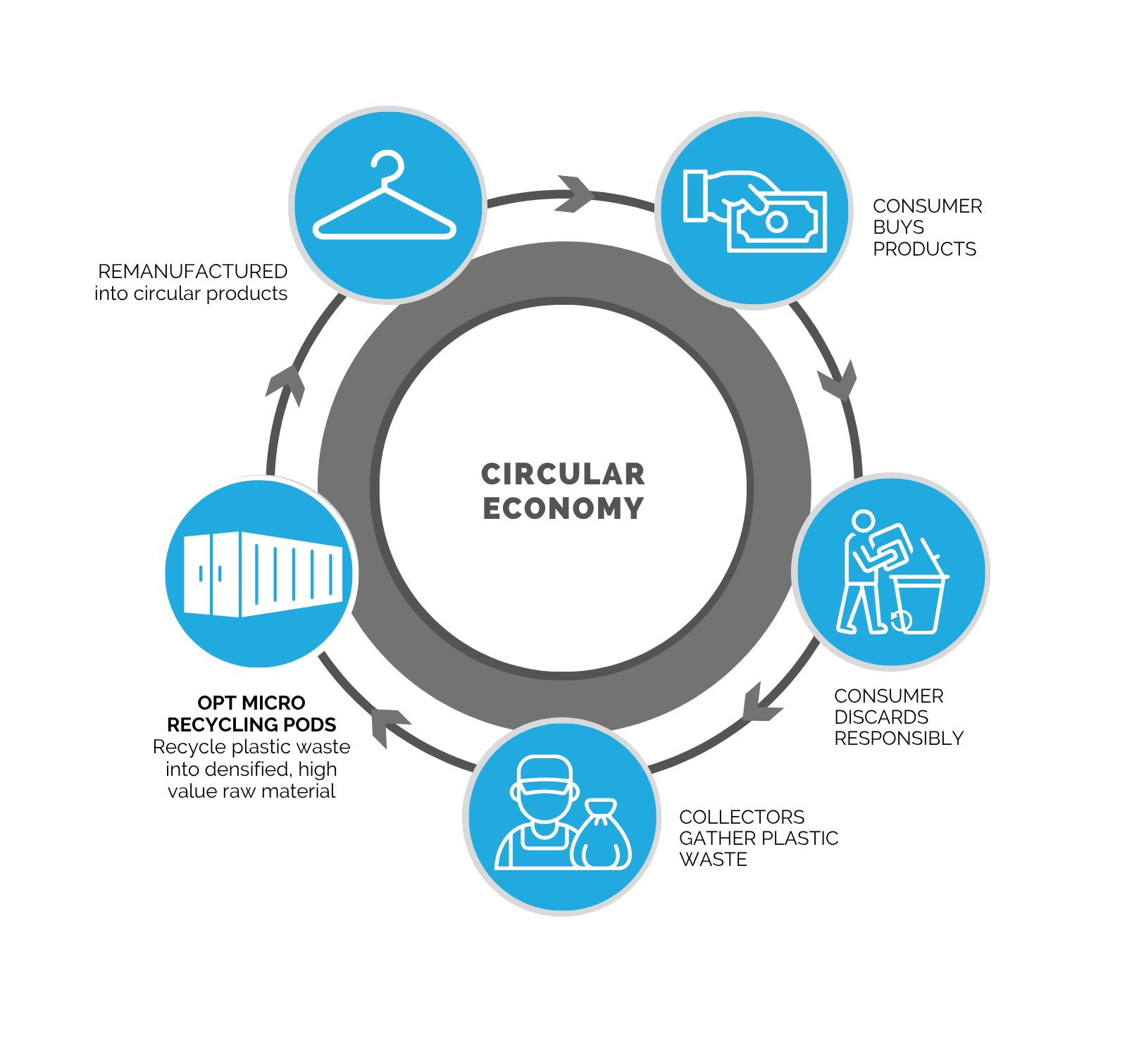 Our Micro Recycling business model enables a circular economy by ensuring that plastic waste is captured at the source, processed on-site and turned into high-value raw materials ready to re-enter supply chains.